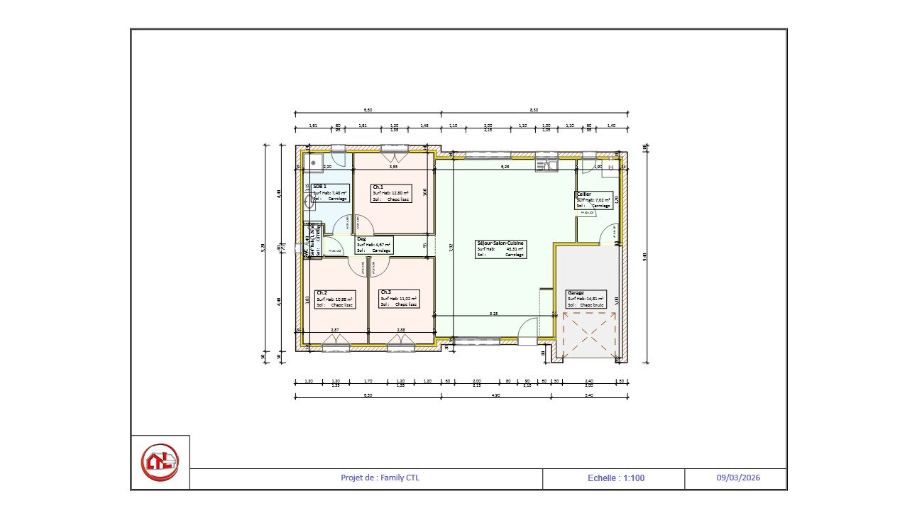Cette maison de plain-pied offre une conception simple, fonctionnelle et agréable à vivre. Avec ses 3 chambres, sa pièce de vie ouverte, son cellier et son garage intégré, elle répond parfaitement aux attentes d’une famille recherchant une habitation confortable, bien organisée et facile à vivre au quotidien.