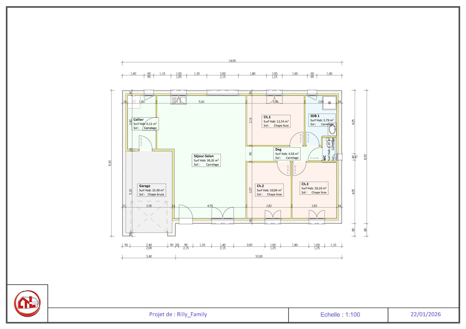 Rilly Family 89 est un modèle pensé pour le confort au quotidien : une grande pièce de vie d'environ 40 m², 3 chambres bien proportionnées et un garage. Un plan simple, efficace et évolutif, idéal pour un projet maîtrisé et un budget optimisé.